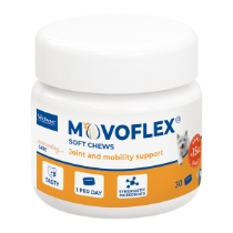 Movoflex® S er et tilskudsfoder til hunde, som hjælper med at støtte led, fleksibilitet og bevægelighed. Produktet samler fem velkendte ingredienser i én blød daglig tyggebid og er udviklet til hunde med behov for ekstra støtte til leddene.